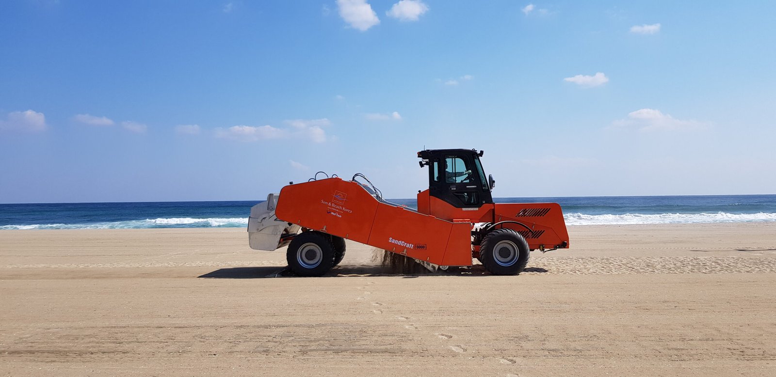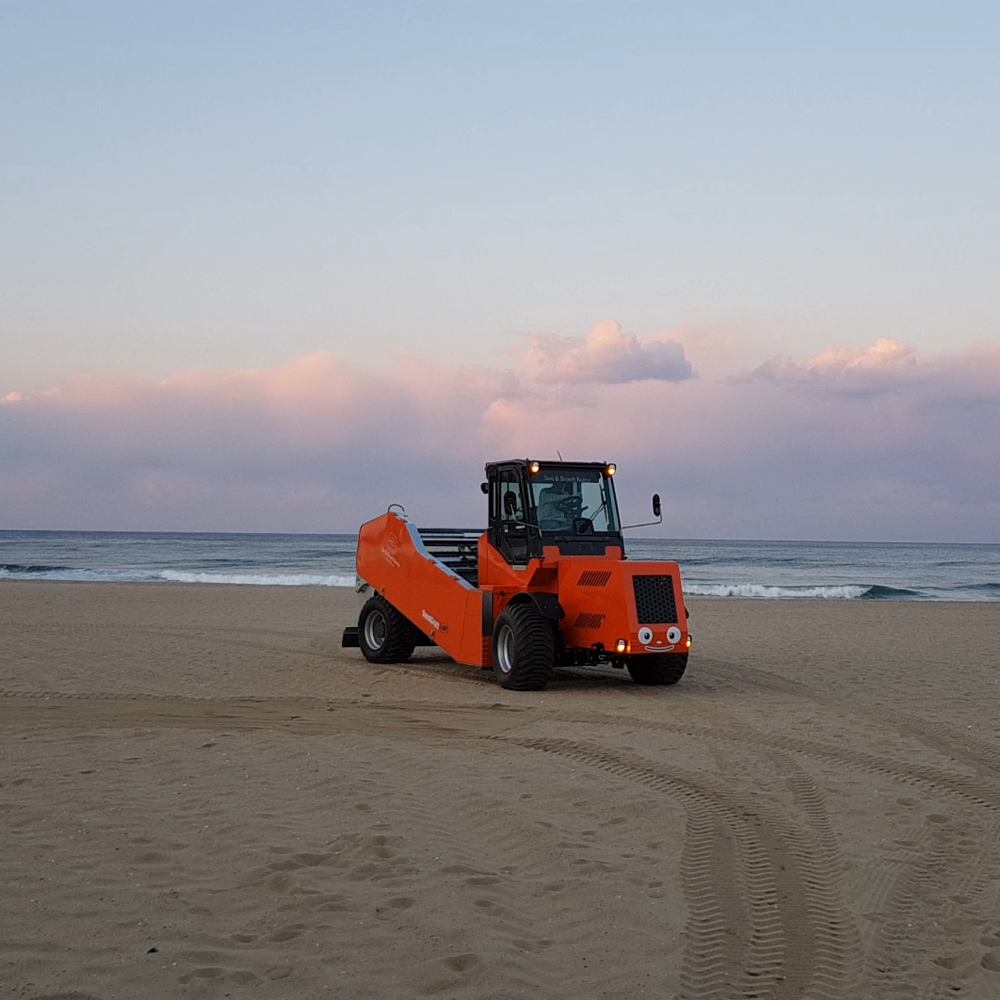모래 속에 남아 백사장 위를 주행하며 모래 속 이물질 제거 자갈 분리 작업과 지면 정리를 동시에 수행하며,